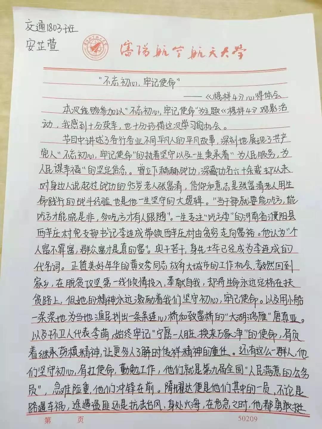 观影结束后,学生党员和积极分子在会后撰写了心得体会。