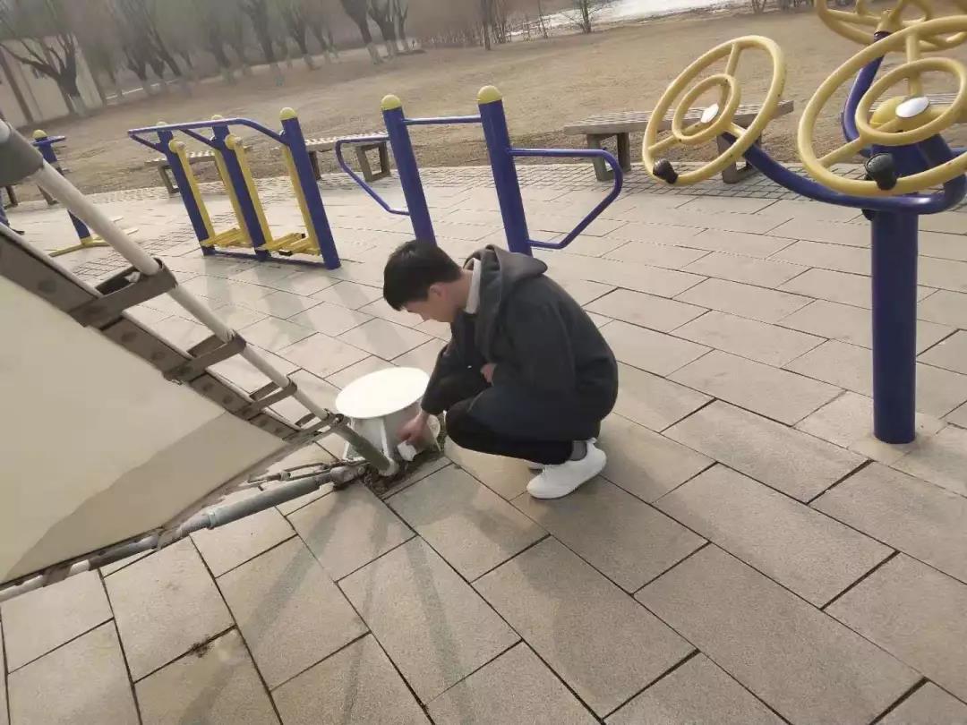 首先,同学们对河岸的垃圾进行了捡拾。近几日天气逐渐回暖,蒲河的冰渐渐融化,河岸也变得有些泥泞,但同学们不怕脏不怕累,沿着河岸徒手捡拾垃圾。