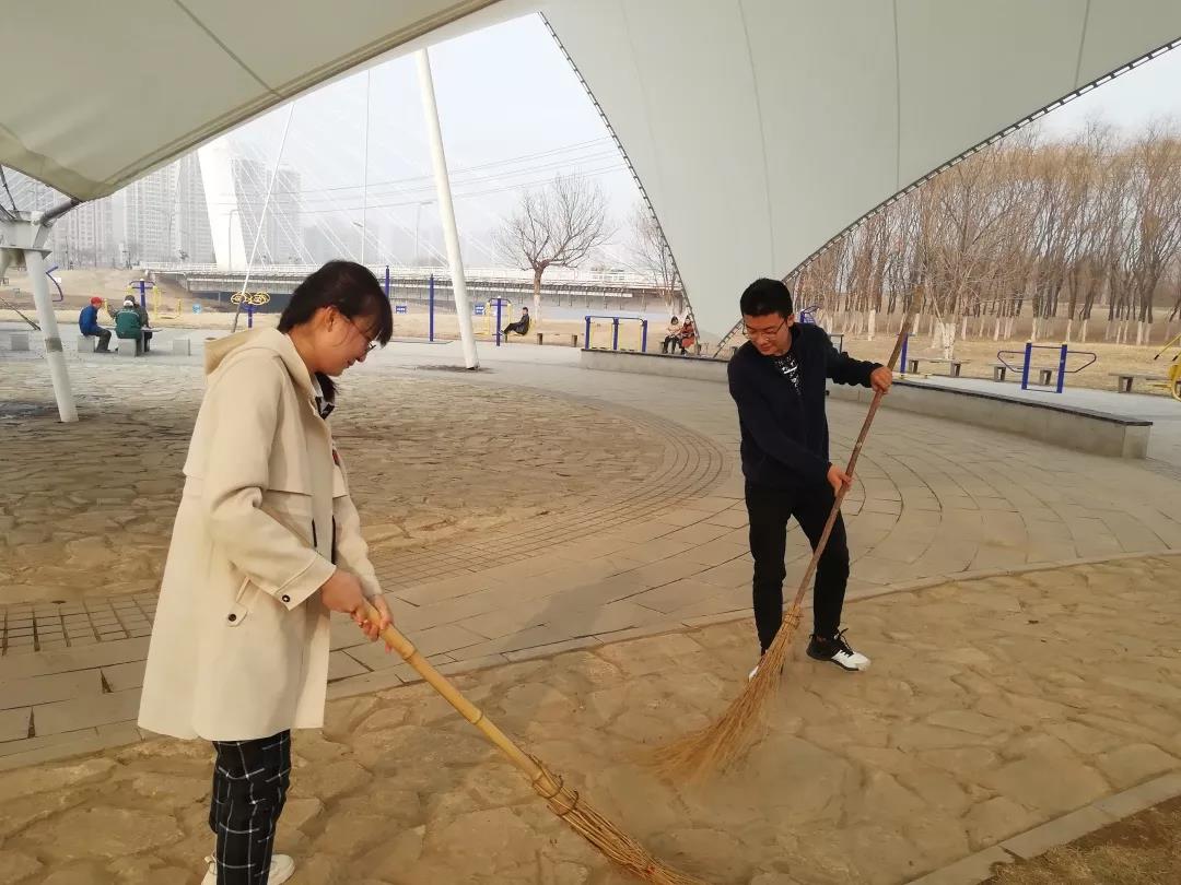 随后,同学们接过了环卫叔叔手中的扫把几人一组对公园的地面进行了清理,同学们用汗水为这个城市的整洁做出了一份贡献,虽然很累但每一个人都感到很幸福。