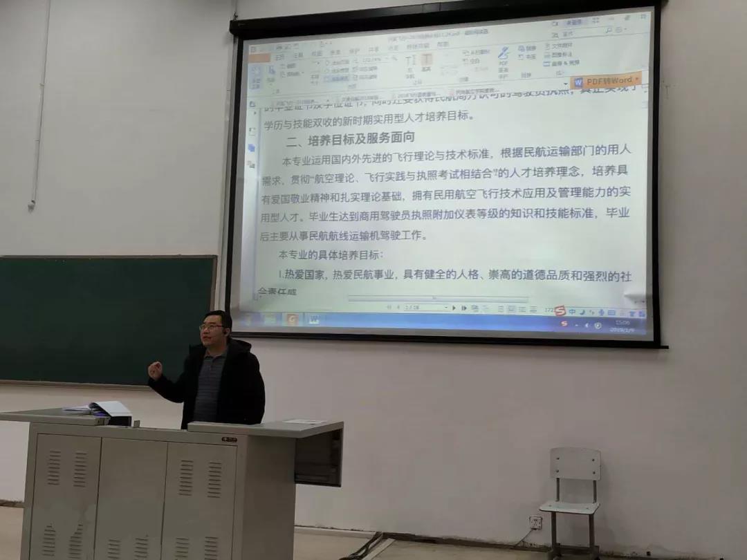 为了让18级学生对专业有更充分的认识,进一步明确未来的发展方向,同时对选课有正确的理解并顺利完成学业,1月9日下午3点,在综合教学楼C座101教室,beat365正版唯一官网必一副院长仲丛久为18级学生做专业教育及培养计划的解读。党总支副书记金日明、18级飞行技术专业辅导员王智博及18级全体学生参加此次大会。