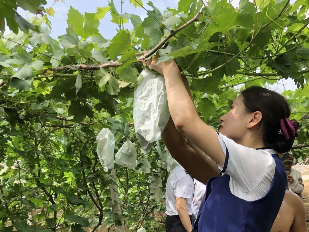 在驻村干部傅春阳的带领下,我们来到杨运镇果园种植基地就果园经济发展现状展开调研。据了解,全村富士苹果产量约1000多万斤,全村大李子产量约10万斤,巨丰葡萄全村产量约100多万斤,多年来销量稳定。通过调研,大家了解了苹果的育苗、管理、采摘到基地棚架的搭设、维护,听果园种植户详细为大家介绍了每种水果的种植方式,保证了绝对绿色、安全,纯天然无污染,同学们满怀着好奇向当地农民学习了套袋技术,同时还了解到使用专业套袋技术也进一步防止虫害及果实掉落,有效地减少种植的损失,提高产率效率。最后我们采用航拍技术,将整片果园全景拍摄记录下来,希望可以进一步帮助当地农民采用线上营销的方式增加收入,早日脱贫致富。